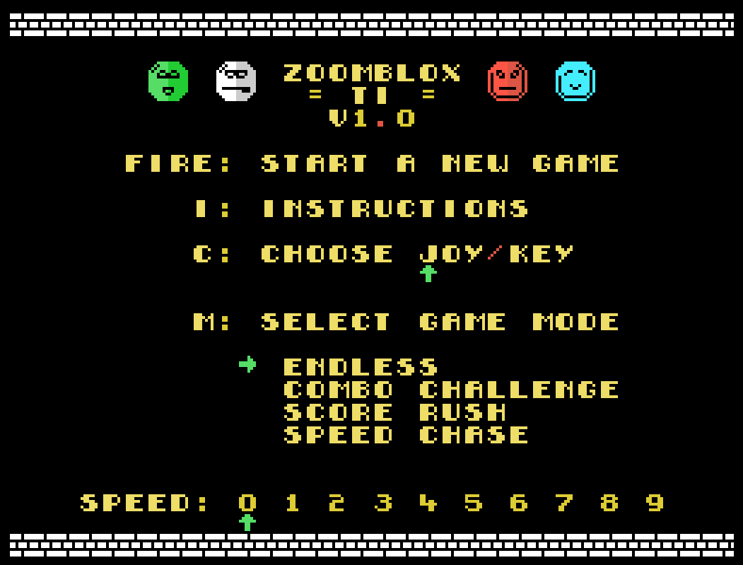 ZoomBlox is a game for the Texas Instruments Ti99/4A home computer, placed 2nd at Evoke 2025 interactive competition!